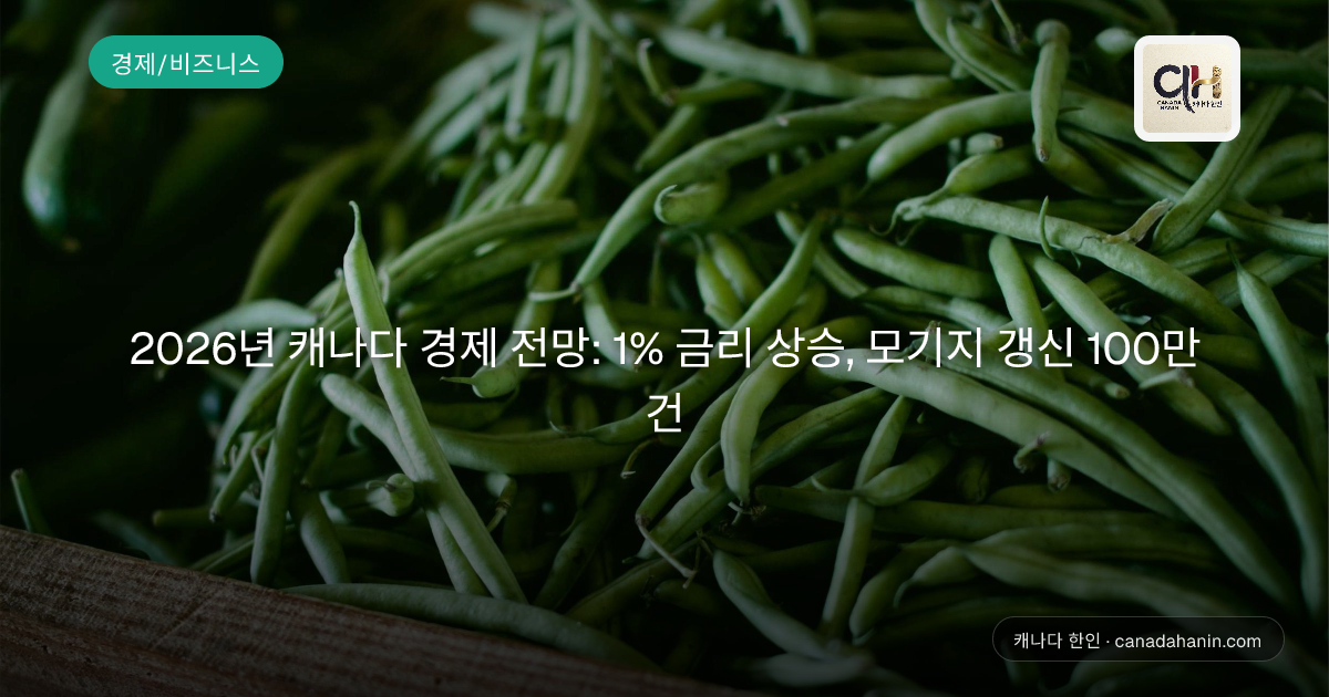 2026๋ ์บ๋๋ค ๊ฒฝ์ ์ ๋ง: 1% ๊ธ๋ฆฌ ์์น, ๋ชจ๊ธฐ์ง ๊ฐฑ์ 100๋ง ๊ฑด