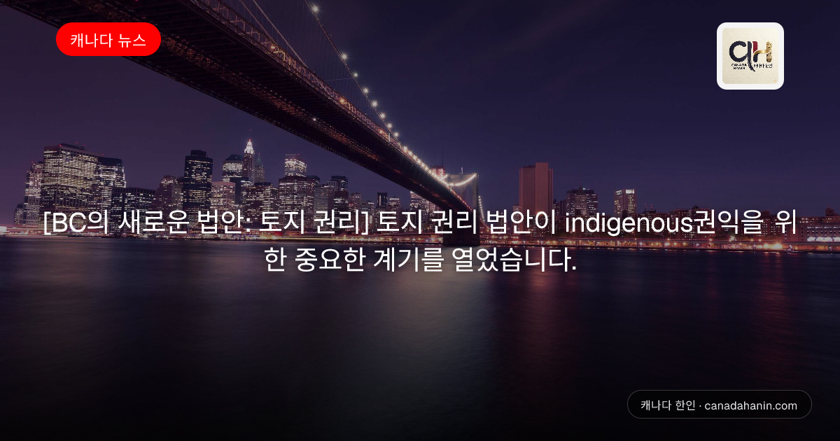 [BC의 새로운 법안: 토지 권리] 토지 권리 법안이 indigenous권익을 위한 중요한 계기를 열었습니다. - 캐나다 뉴스 | 캐나다한인